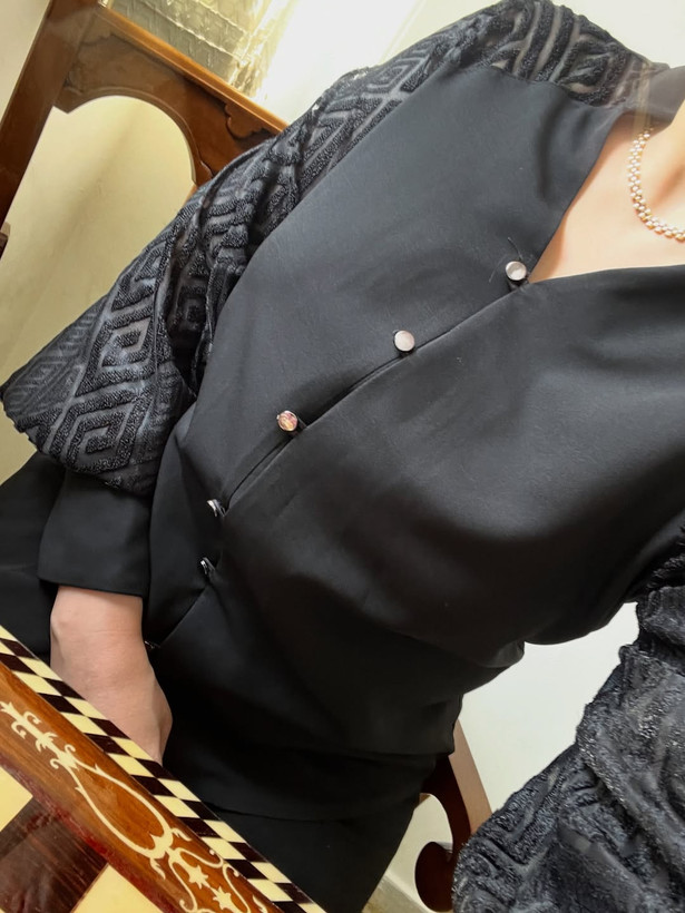 شومیز مجلسی خاص با پارچه کرپ بسیار ظریف و آستین مخمل طرحدار وقار شرقی ، جذابیت مدل رنگ بندی : مشکی سایز بندی : ۴۲ تا ۴۸