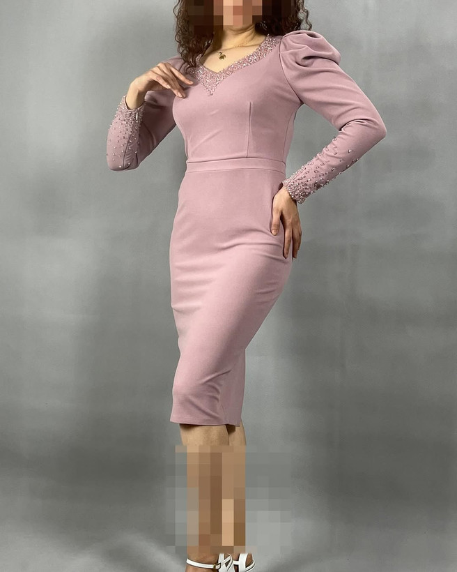 پیراهن مجلسی میدی با پارچه کرپ دالقیچ با کار دست سنگ دوزی شده در دو رنگ آبی کاربنی و کالباسی
