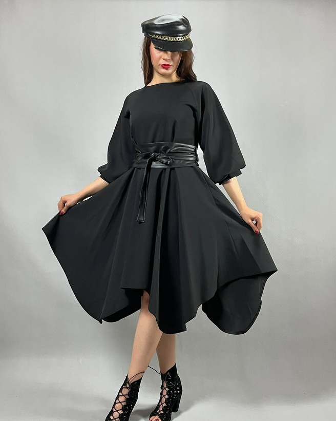 پیراهن اسپرت دخترونه خاص مون با کمر بند متفاوت چرم در سایز بندی ۳۸ تا ۴۶ رنگ مشکی شارژ شد