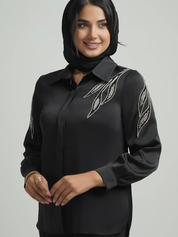 متاسفانه این کالا در حال حاضر موجود نیست. میتوانید از طریق لیست بالای صفحه، از محصولات مشابه این کالا دیدن نمایید.شومیز مجلسی با پارچه ساتن ابریشم ترک که روی آستین و کارور نگین دوزی بسیار ظریف شده سایز بندی : 40 رنگبندی : مشکی