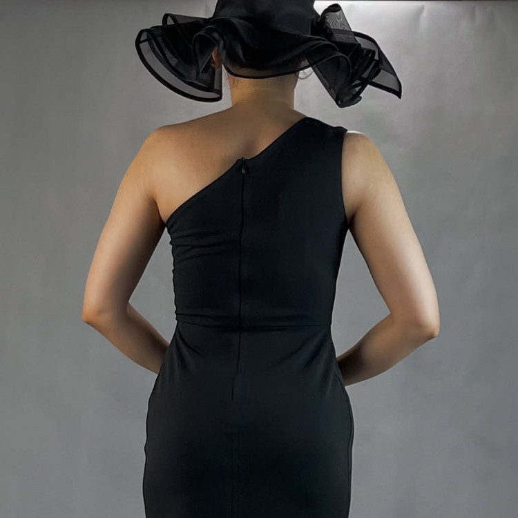 یک انتخاب برای خانمهایی که میخوان در هر جمعی متفاوت دیده بشن پیراهن جذاب یقه رومی فندی با دامن لنگی با پارچه کرپ دالقیچ تکرنگ مشکی برش نامتقارن + طرح کلاسیک = استایلی که هیچوقت قدیمی نمیشه